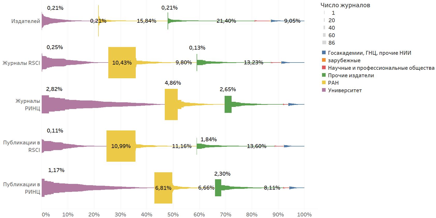 Научные журналы - распределение по типам издательств